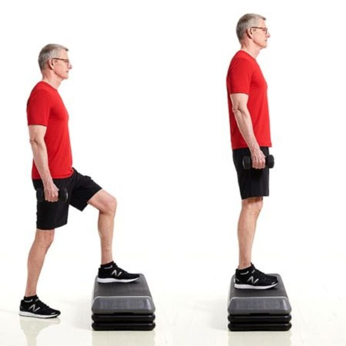 Going up the stairs is rarely the problem; it’s coming down that hurts. Step-ups train the “braking” system of your knee.