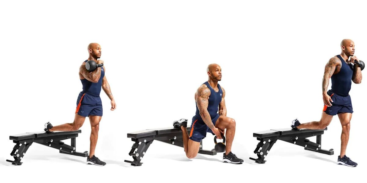 • How to do it: Stand a couple of feet in front of a chair or bench. Reach one foot back and rest the top of it on the bench. Squat down with your front leg.