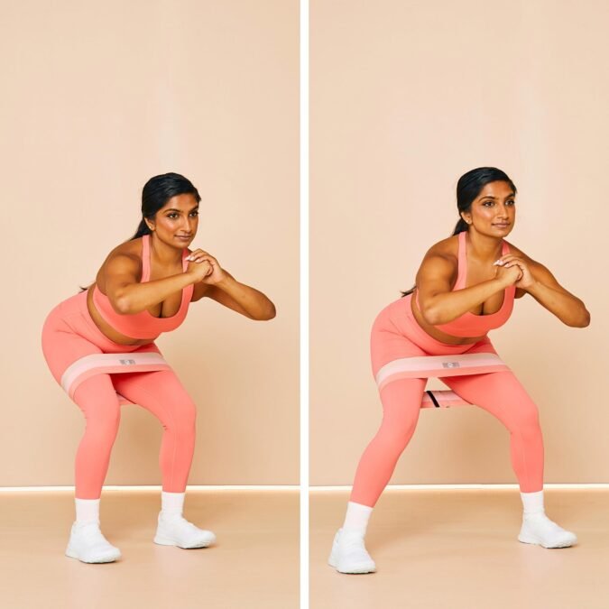 • The Goal: Keep your knees pushed out over your toes. Don’t let the band snap your knees inward. This builds the “outer wall” of your leg strength.